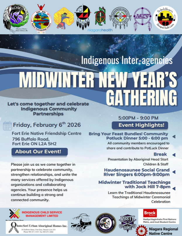 Please join us as we collaborate with other Indigenous (and collaborative) agencies for a Midwinter New Year’s Gathering where we will come together in partnership to celebrate community, strengthen relationships, and unite the many services offered by Indigenous organizations and collaborating agencies.